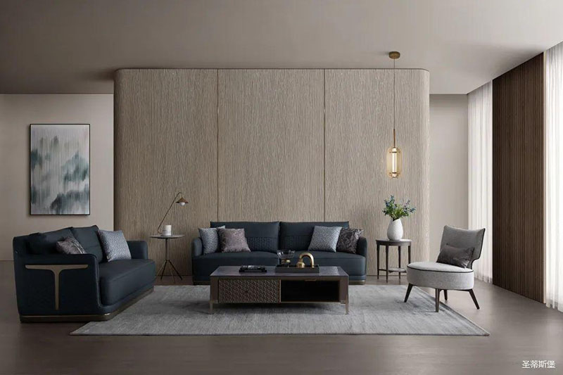 疏朗大氣的客廳空間,整體采用低明度的木紋色,在保留實(shí)木質(zhì)感同時(shí),也為空間增添了一縷木香。沙發(fā)線條利落干凈,深邃而浪漫的配色仿佛將居者帶進(jìn)了海洋世界。藝術(shù)編制皮料搭配金屬底座,時(shí)尚大氣質(zhì)感撲面而來,將理性和感性完美結(jié)合,提高了居家的時(shí)尚格調(diào)。