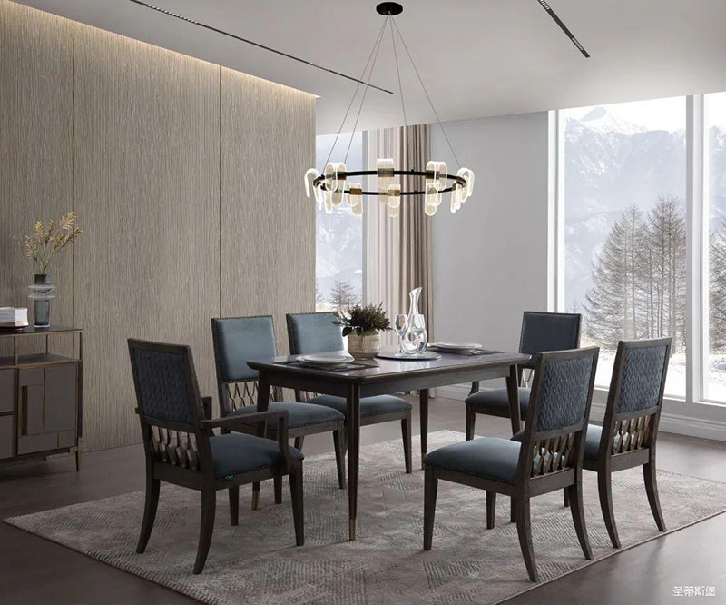 餐桌的天然材質(zhì)經(jīng)過時(shí)間的沉淀,散發(fā)著生生不息的自然生命力,它的紋理與質(zhì)感展現(xiàn)著尊貴奢華的藝術(shù)氣息。“藝術(shù)的偉大意義,基于它能顯示人的真正感情,內(nèi)心生活的奧秘和熱情的世界。”而這款融合自然藝術(shù)與實(shí)木雕刻工藝的餐桌,不僅表達(dá)了羅曼·羅蘭對(duì)于生活與感情的理解,也讓你在居家生活中處處體驗(yàn)到生活的真諦。