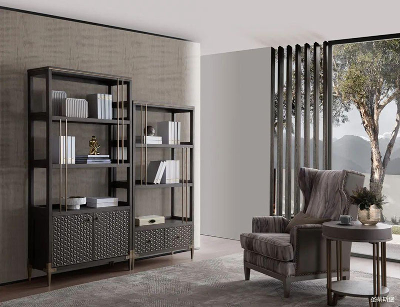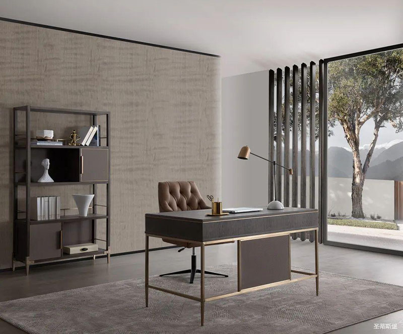 沉靜雅致的書房空間,溫潤(rùn)實(shí)木與硬朗金屬線條相互配合,運(yùn)用基礎(chǔ)幾何,打造空間的高級(jí)感。輕奢質(zhì)感緩緩流淌,書籍整齊,擺件精致,無一不追求著精致細(xì)節(jié)與極致的品味,營(yíng)造出時(shí)尚與沉穩(wěn)并列的氛圍,詮釋著居者對(duì)是生活環(huán)境的內(nèi)在追求。