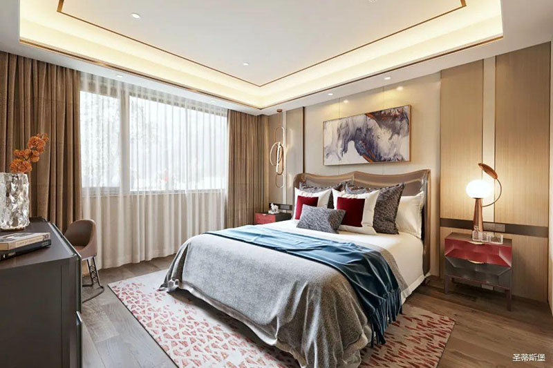 追求室內(nèi)風(fēng)格體現(xiàn)的寶寶們可以選擇主吊燈,但主要以暖色光源為主,盡量不要選擇繁雜色彩光源,以免引起睡眠不適。若室內(nèi)面積較小,也可在主臥騰出書房空間,在床頭兩側(cè)安裝床頭燈,便于在床上工作學(xué)習(xí),同樣選用舒適的暖色光源,有利于保護(hù)視力。