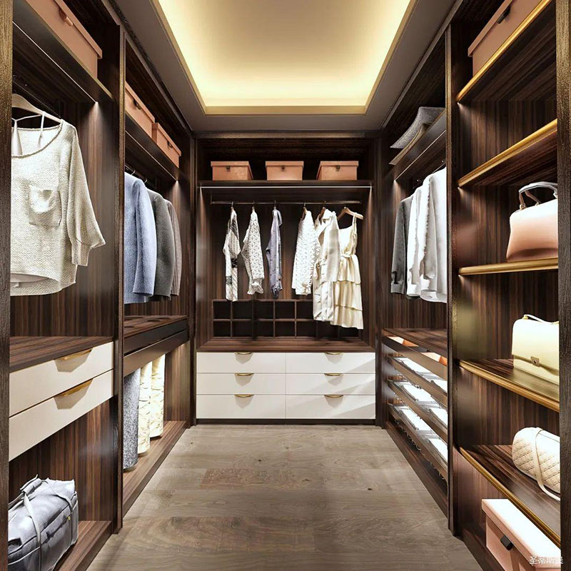 衣帽間充分將生活中的“簡”融入到設計中,一眼便可望盡的小隔間,把生活中的便利藏進了每個小細節里。舒適的拼接配色,演繹了意式極簡里的高端與奢華,溫暖的燈光點綴,襯托出溫馨的更衣氛圍,讓你擁有豐富多彩的著衣體驗。