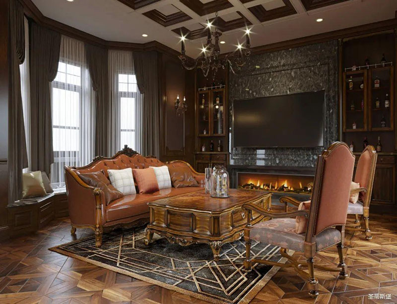 進入客廳,純正美式城堡氣息撲面而來,大理石電視背景墻被實木對稱鑲嵌,兩側置頂實木酒架更添美式風情。純正美式風格沙發,被流暢光滑的實木線條包圍,邊角之處盡顯柔美,真皮搭配全實木藝術雕刻,貼心的軟包設計,讓脊椎盡情舒展。霸氣獸腳茶幾,將美式的粗獷大氣體現的淋漓盡致,精美絕倫的實木單椅在樸實自然的背景里顯得格外精致美好!