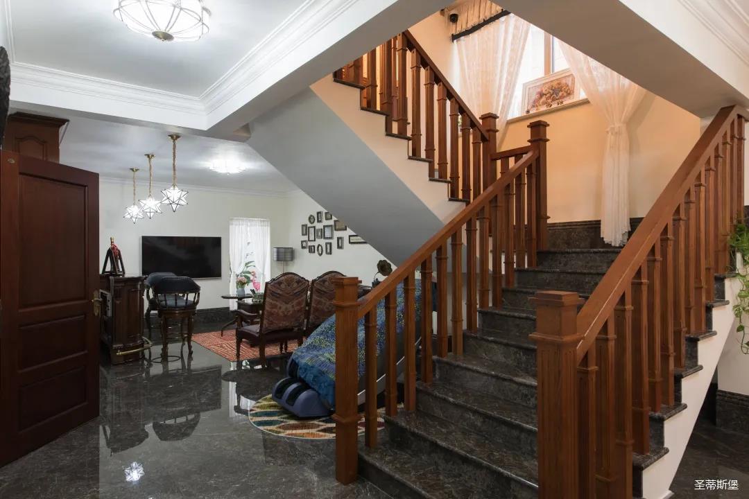 設計師根據業主喜好的風格進行設計,同時考慮了家庭成員不同的年齡層次,分別進行了不同氛圍的營造,通過旋轉樓梯進行空間貫穿,將不同空間的格調與氛圍聯系起來,達到和諧統一的效果。