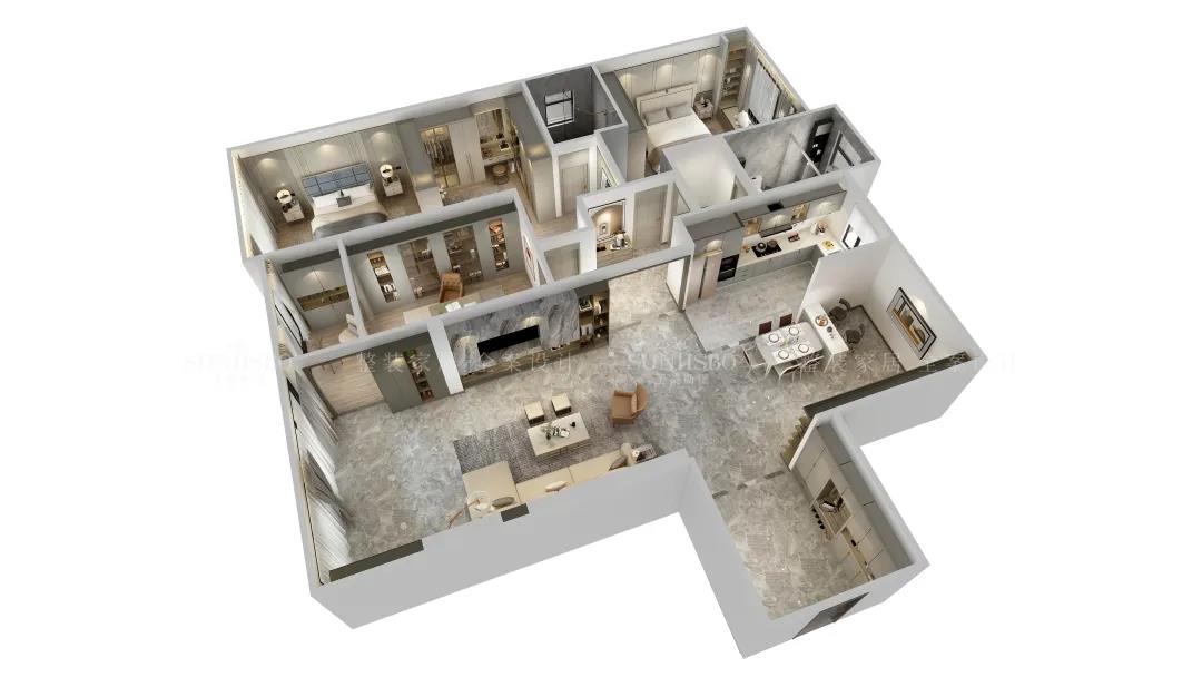 為空間營造出素雅精致、簡約時尚的浪漫輕奢質感。