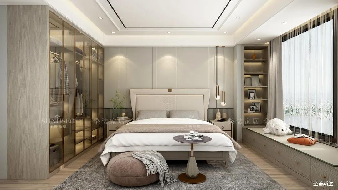 寬闊的就寢區搭配定制實木飄窗,將空間的舒適感達到極致。