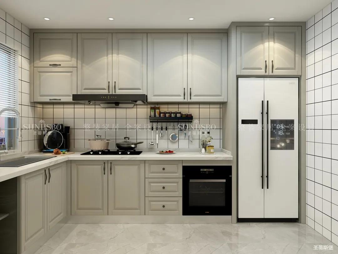 夫妻倆雖平時工作較忙,但對于一日三餐的要求一點都不馬虎。為了提高下廚的舒適度,將取-洗-切-煮動線合理布局,操作順暢便捷。整體封閉式的收納格局+嵌入式的電器,令餐廚空間更干凈整潔。