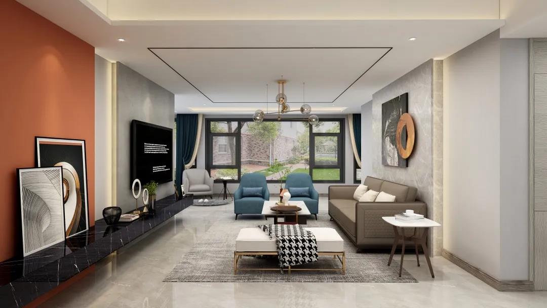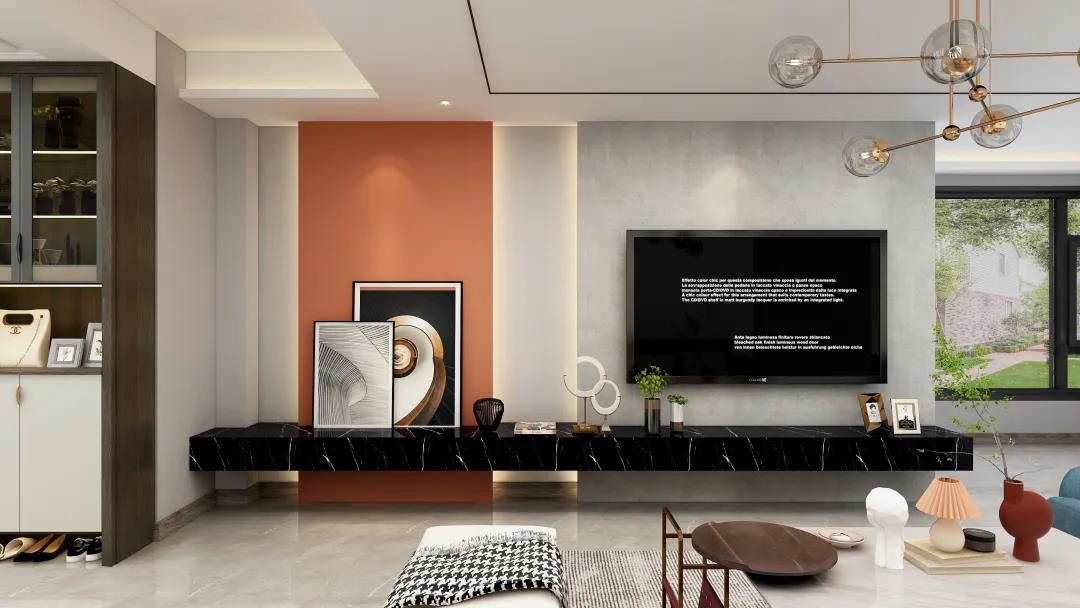 窗外的陽(yáng)光使得客廳空間更加明亮寬敞。電視墻精致的線條設(shè)計(jì),令空間更具層次感。亮眼的愛馬仕橙,搭配個(gè)性的抽象掛畫又讓整個(gè)墻面更加豐富。活力與沉穩(wěn)融合,給平凡而枯燥的生活增添些許希望與美好。