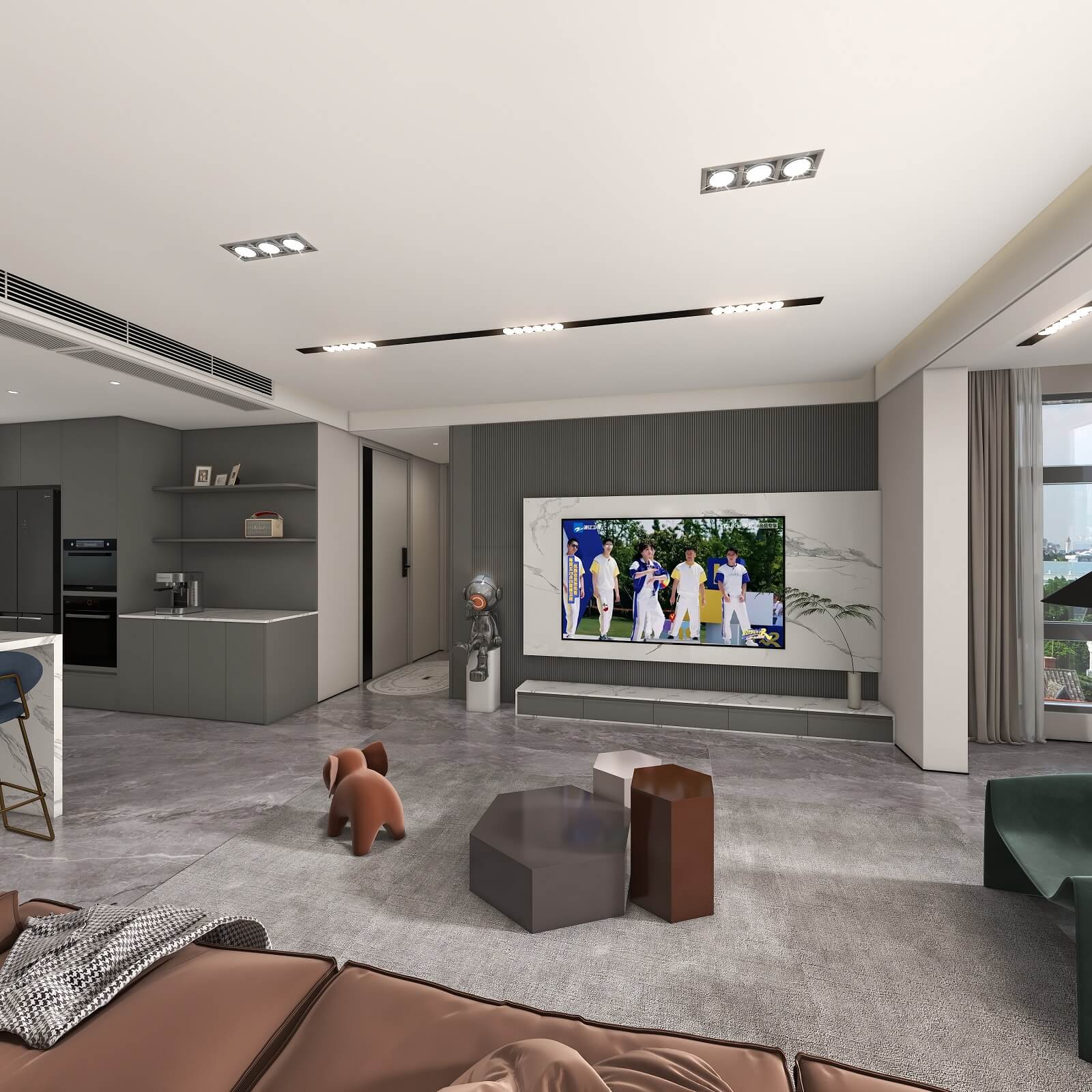 全面開放式格局,讓客餐廳之間相互聯動,毫無阻隔,在提升體驗感的同時,也增強了整體采光和通風。