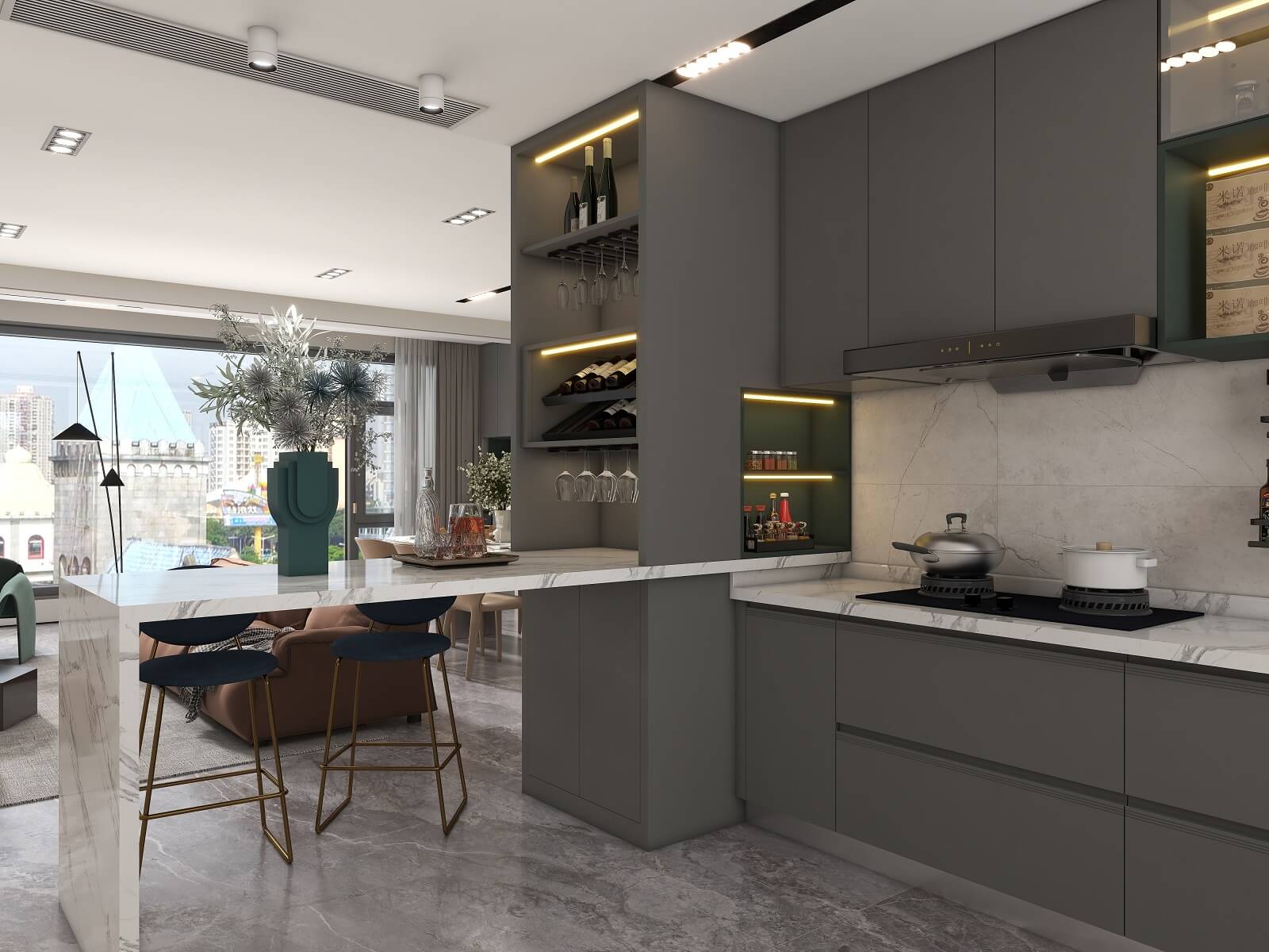 廚房的味道是香甜的,喜歡烹調的居者是歡喜的,呈現出來的食物自然是美味的,帶著這份心情融入到空間中,生活的煙火氣也可以是浪漫的,連接著這份愛意,詮釋著家的味道。